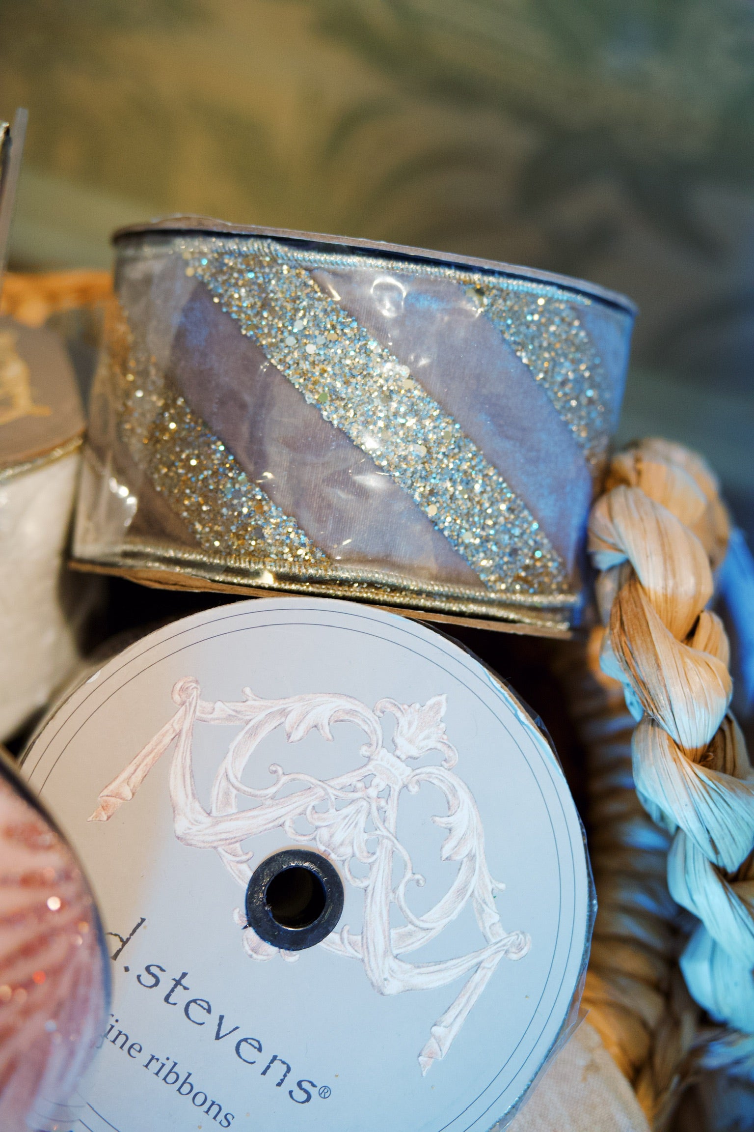 The luxurious velvet texture combined with shimmering accents creates an elegant, dimensional finish that catches the light beautifully. Perfect for adding a refined touch to premium packaging, floral arrangements, or decorative applications.