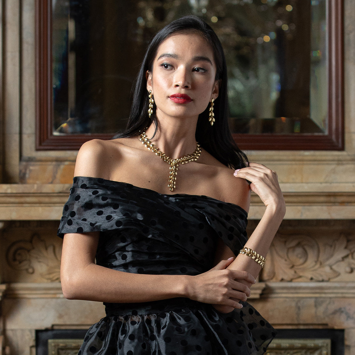 s if crafted by Helen of Troy herself, we like to imagine she was wearing these laurel wreath earrings when she launched a thousand ships that sailed into history. This exquisitely simple and versatile pair adds a golden gleam and polish to any occasion or ensemble with classic style and grace.