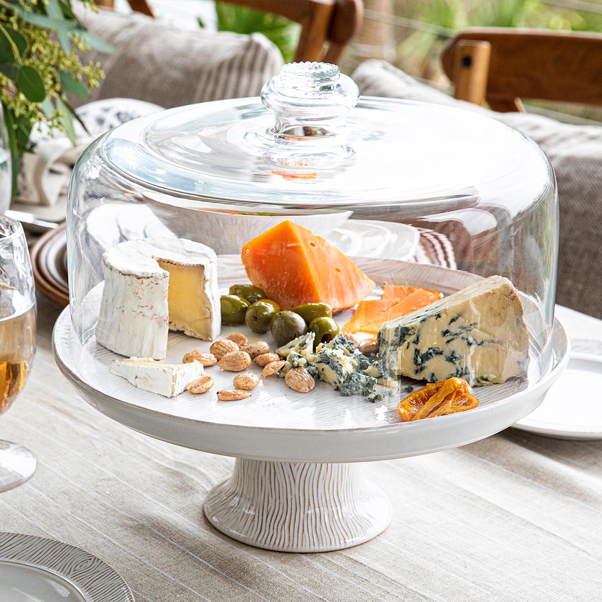 From the Berry & Thread Collection- For the consummate hostess, baker, and those who deem such items a necessity, not a whim...rejoice! This cake dome is constructed of our sturdiest mouth blown glass from Portugal, enabling you to infuse your everyday entertaining with a healthy (and sweet) dose of elegance.