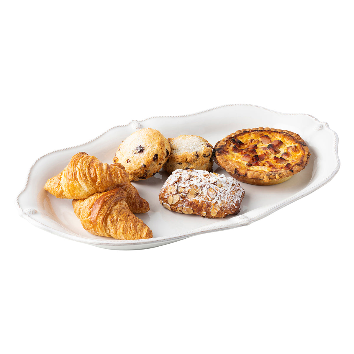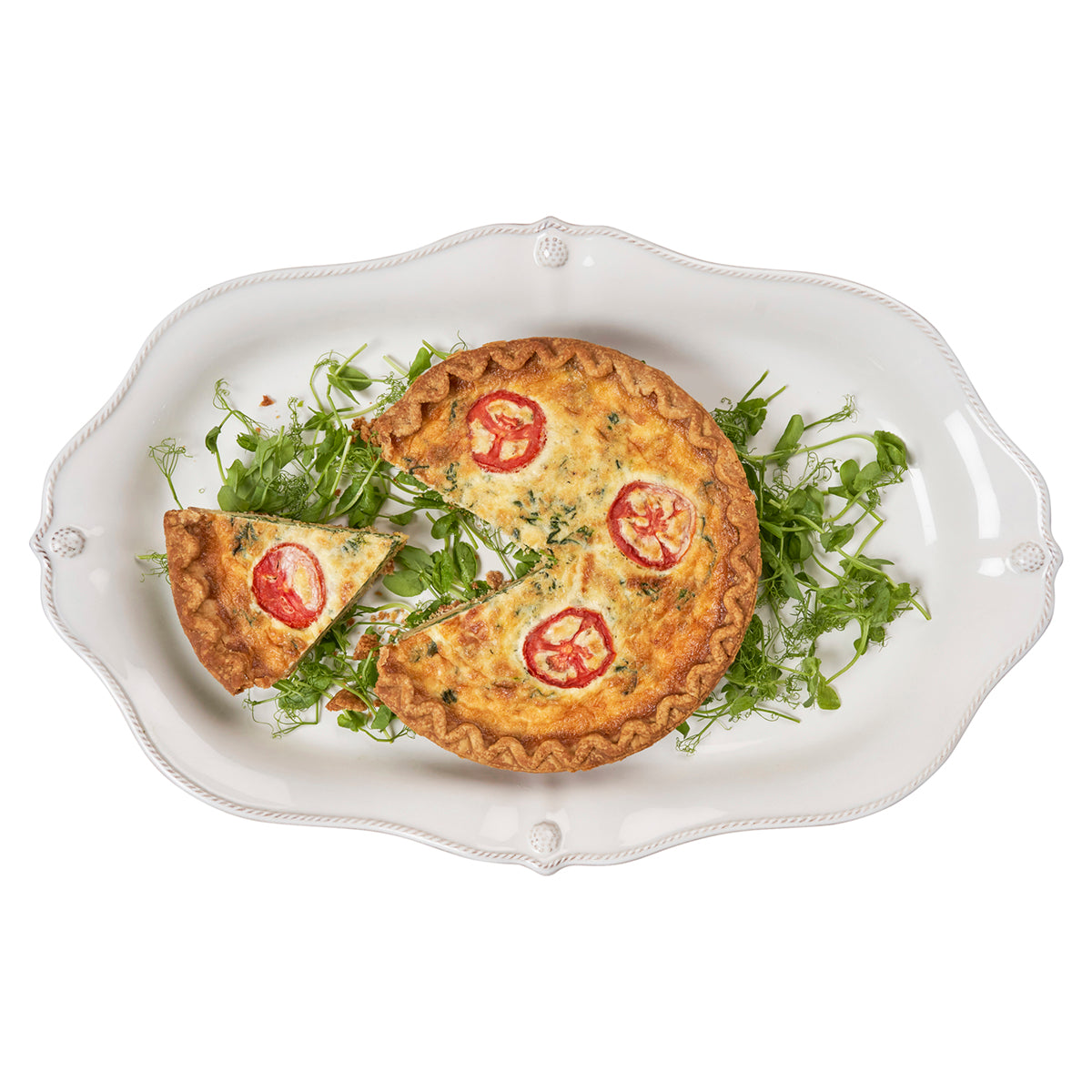 From the Berry & Thread Collection - Rimmed with a simple thread and adorned with a sprinkling of berries, this iconic dinnerware collection embraces the historic motifs of Juliska's Bohemian glassware. Ideal for a large gathering, this 20" platter with a subtly scalloped edge will take your roast straight from oven to table.