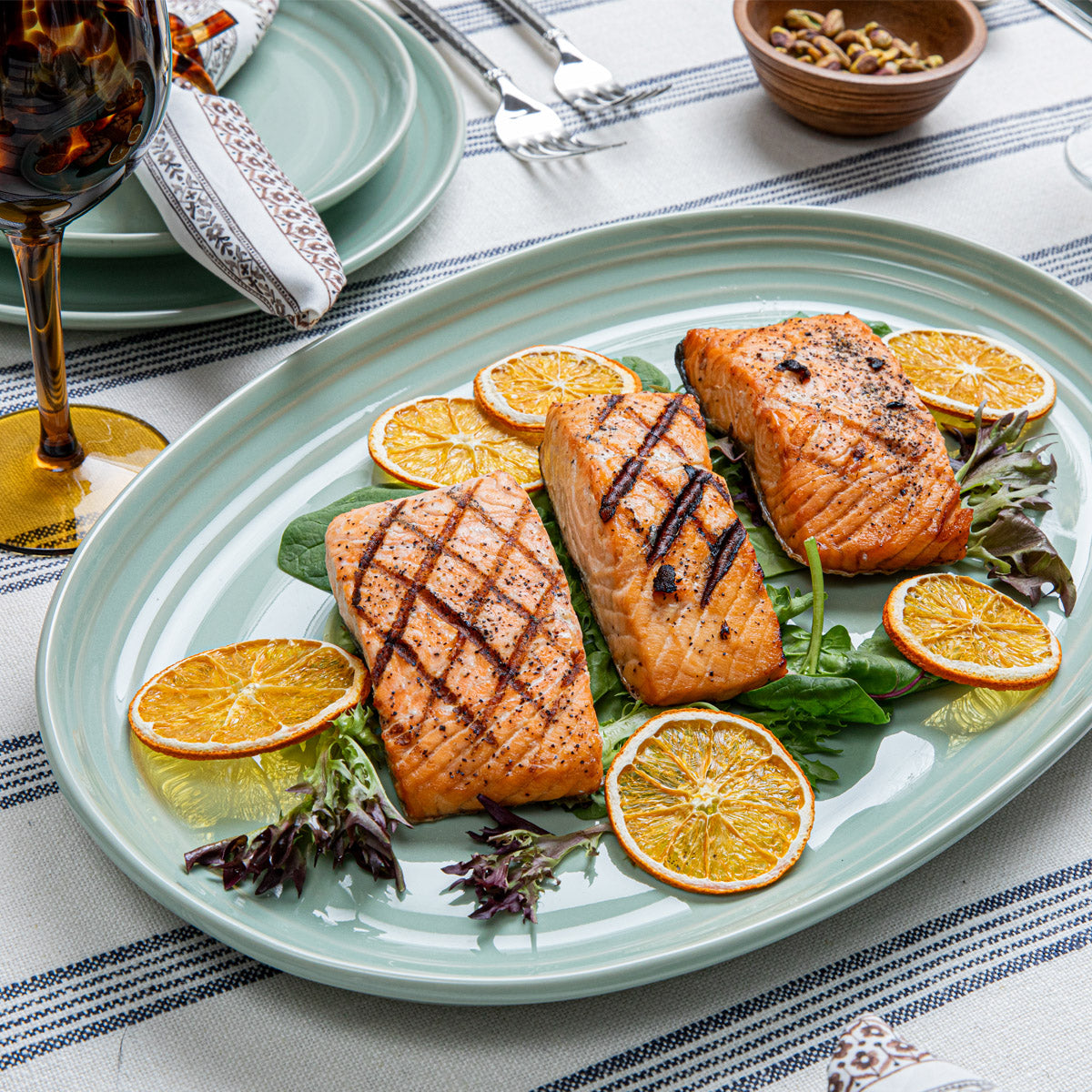 From the Bilbao Collection - Verdant and versatile, this soft sage hue is the new neutral for all of your spring and summer dining - indoors or out. Inspired by the casual elegance of the city of Bilbao, this prodigious platter serves up hand-hewn texture and a fresh palette for presenting everything from charcuterie in the garden to formal Sunday lunch.