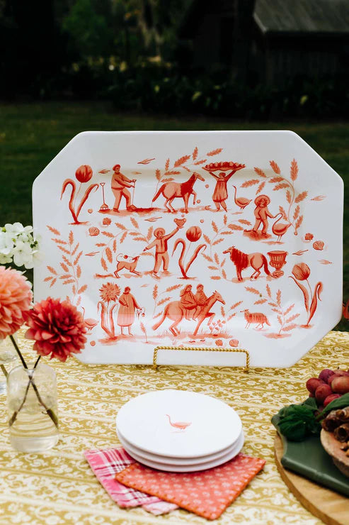 The carefully shaped corners provide interest and intrigue, while the shape serves as a wonderful backdrop for the beautiful artwork on the platter.