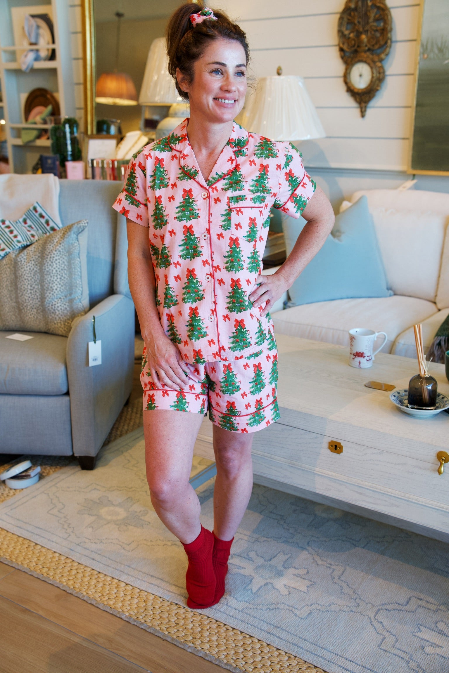 Ribbons In The Pines| Short Sleeve Pajama Gift Set | Pink